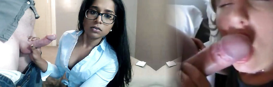 Ultra-cute looking Indian babe in glasses gives a truly good Blowjob on webcam