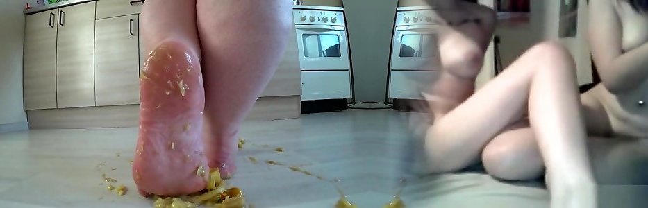 a thick mature woman, plus-size, shag a banana with naked feet, high-heeled shoes. crash trampl