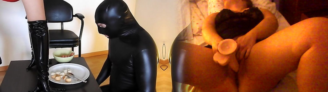 Dominatrix coercing her victim to slurp