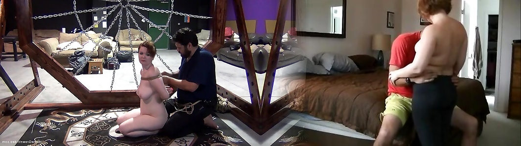 Buxomy red-haired gets strapped up with cable and taunted
